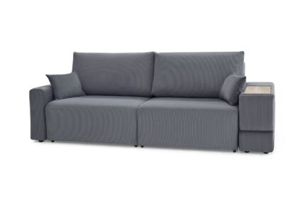 Стильная асимметричность, обивка из велюра с текстурой в рубчик – отличительные черты дивана-кровати Милан. Дополнительную функциональность создает конструкция боковины: широкий