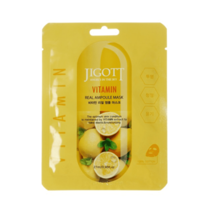 Тканевая маска для лица с экстрактом граната Jigott Pomegranate Real Ampoule Mask осветляет, питает, успокаивает, подтягивает кожу лица. Разглаживает мелкие