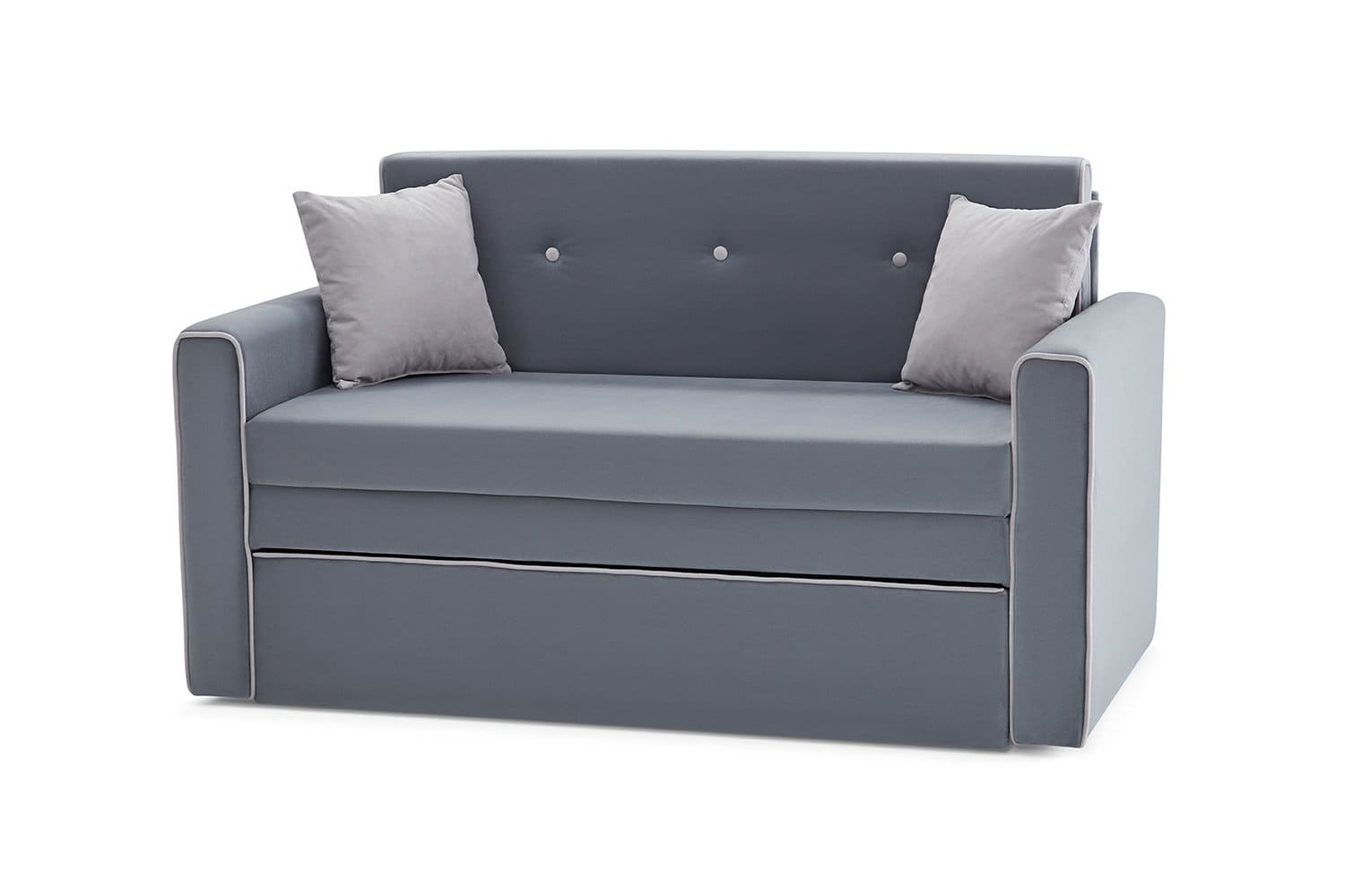 Двухместный диван Вегас прекрасно проявит себя в небольшой гостиной, где особенно важно найти продуманное функциональное решение. Лаконичный дизайн смотрится эффектно благодаря использованию обивочных тканей одной цветовой гаммы, но разных тонов. Декоративный кант и пуговицы подчеркивают выразительную фактуру велюра.