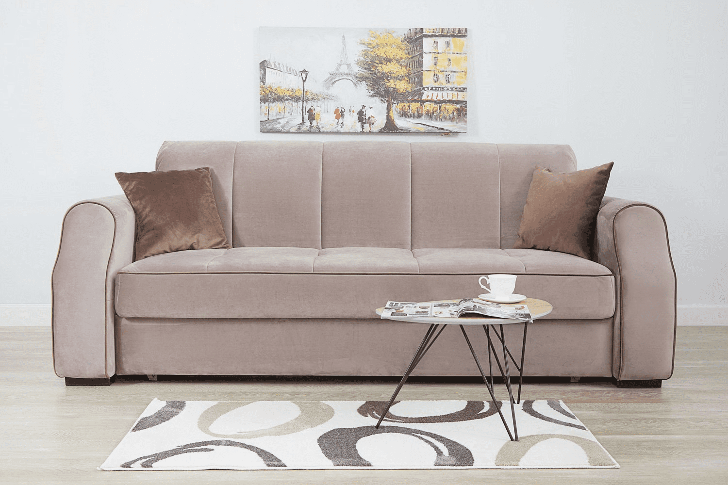 Диван-кровать Тулуза сочетает в себе все функции, необходимые для полноценного отдыха в дневное и ночное время. Особую пышность и мягкость его формам придают утяжки‑пике на подушках сиденья и боковинах. Все детали чехла из велюра подчеркнуты контрастным декоративным кантом.